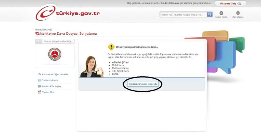 E Devlet Haciz sorgulama işleminin ilk adımı için Yukarıda verilen bağlantıyı açınız, bağlantıyı açmanız halinde karşınıza üstteki sayfa çıkacaktır. E Devlet Haciz işlemi için açılan bu sayfadan “Kimliğimi Şimdi Doğrula” butonuna tıklamanız gerekmektedir.